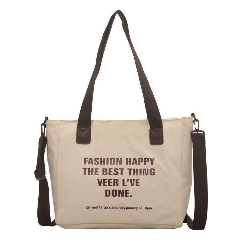 Custom Logo Letter Baumwolle Leinwand Tote Tasche mit Polyester-Bindung und große Kapazität 1
